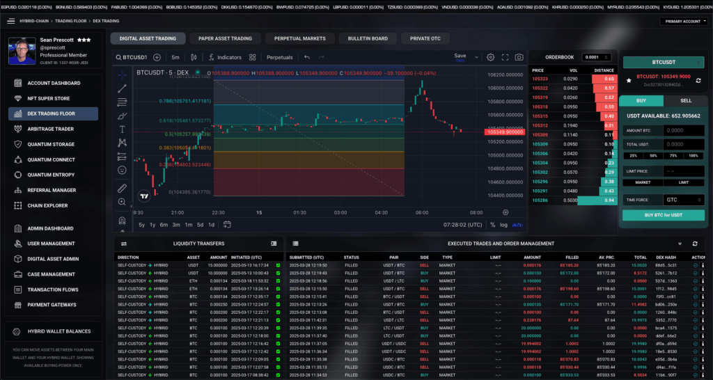 Trade seamlessly across assets and chains using our integrated charting and execution module. Access real-time price feeds, advanced indicators, and hybrid liquidity pools – with native support for tokens, wrapped assets, and on-chain settlement.