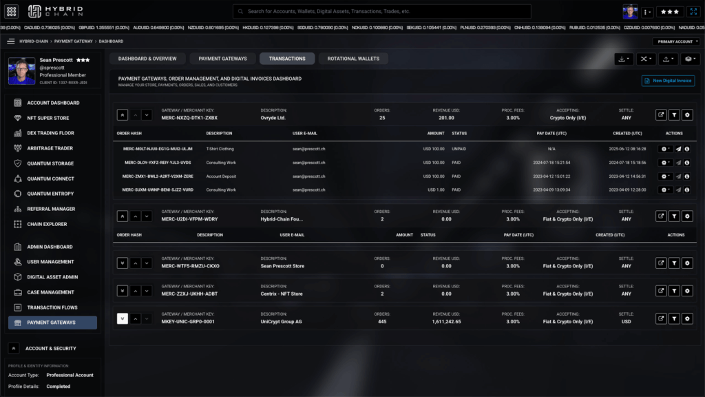 Primary gateway for secure access across multiple native coins, sub-coins, and tokens with Layer-2 rapid transfers and Layer-1 external capabilities.